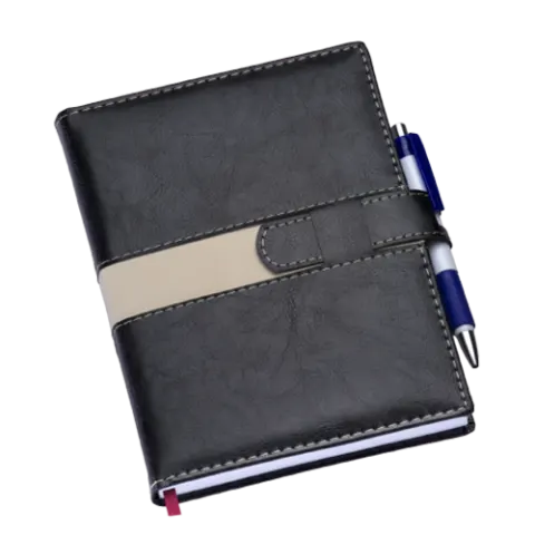 Agenda Wire-o Metalizada Prata com Faixa Ouro com Bolsa Interna é uma ótima opção de brinde promocional e uma ferramenta perfeita para fidelizar o seu cliente. Confira todos os modelos!