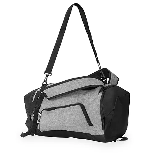 Descrição: Bolsa de viagem confeccionada em poliéster resistente à água e capacidade para até 32 litros. Possui alças ajustáveis e acolchoadas para as costas, o que permite seu uso também como mochila. Além do compartimento interno principal, conta com três bolsos externos, incluindo um dedicado para tênis. Acompanha alça transversal removível.