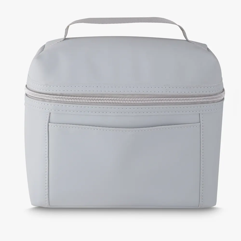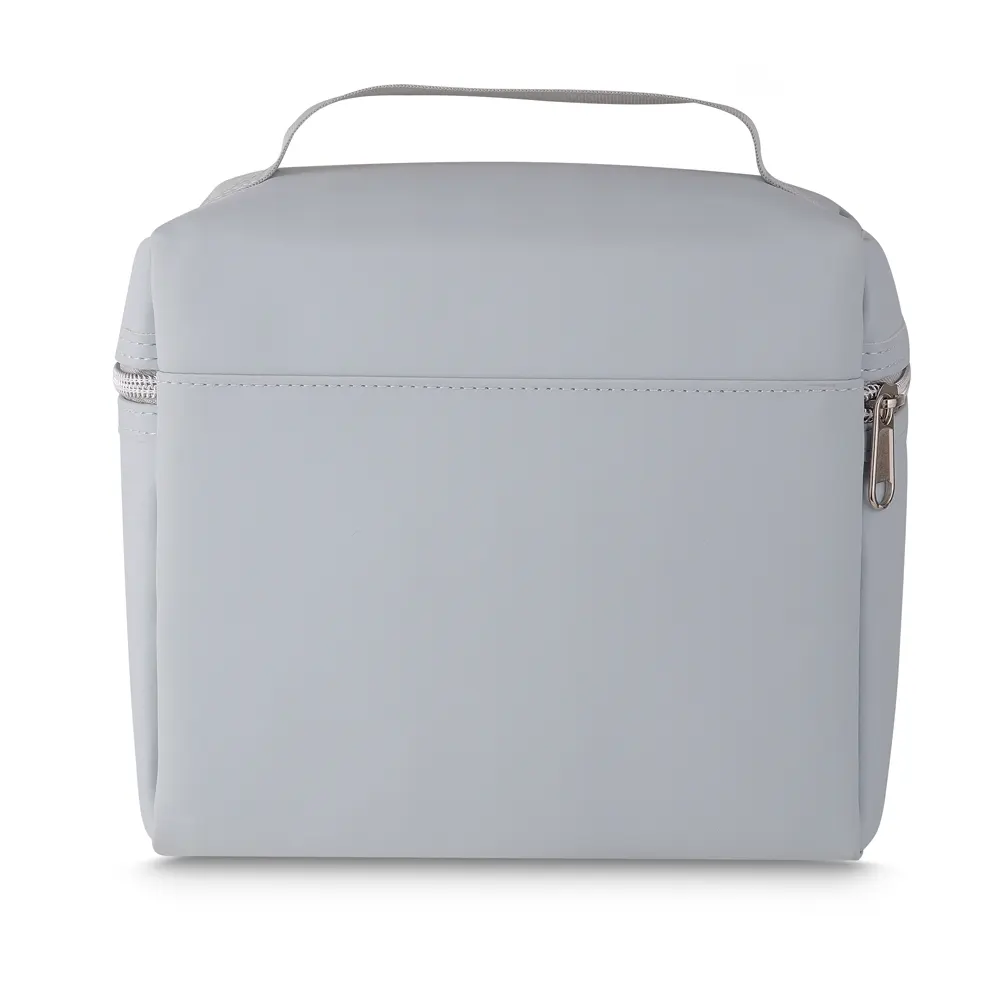 Descrição: Bolsa térmica confeccionada em PU com capacidade de até 4 litros e fechamento em zíper. Possui revestimento interno térmico em que ajuda a manter a temperatura de alimentos e bebidas conservada por mais tempo. Apresenta bolso frontal e alça de mão para transporte.