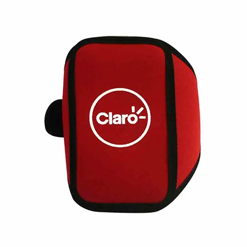Descrição: Braçadeira para celular em couro sintético e revestimento posterior em neoprene. Possui capacidade para aparelhos de até 6,5 polegadas, além de visor em plástico e alça de neoprene com fechamento em velcro para ajuste no braço.