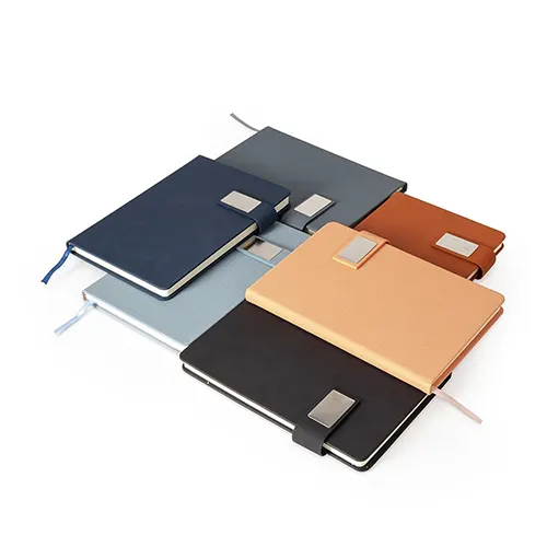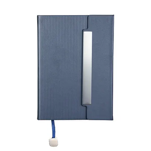 Descrição: Caderneta com capa em couro sintético levemente texturizada, marca-páginas em fita de cetim com plaquinha metálica decorativa, aba de fecho magnético com placa metálica e cerca de 96 folhas marfim pautadas.