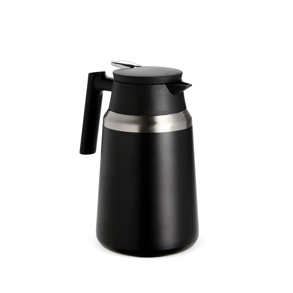 Descrição: Garrafa térmica feita em inox com cabo e bico em plástico resistente, base emborrachada antiderrapante e capacidade máxima de 1,5 litro. com acionamento por pressão para servir o conteúdo. Apresenta estrutura de parede dupla e isolamento a vácuo, que conserva a temperatura dos líquidos por mais tempo.