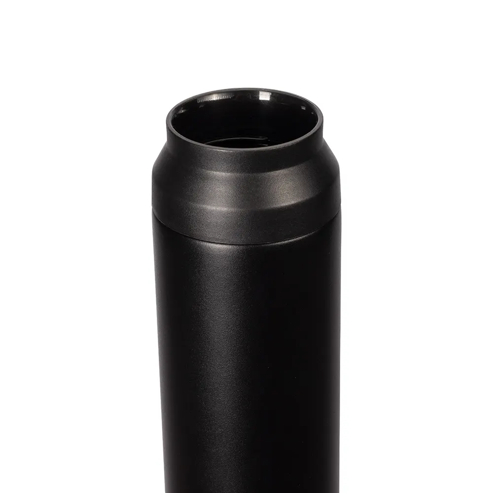 Descrição: Garrafa térmica com capacidade de até 500ml. Conta com estrutura de parede dupla e isolamento a vácuo, o que permite a conservação da temperatura de bebidas por mais tempo. Possui tampa plástica rosqueável com alça para transporte e abertura em duas camadas.