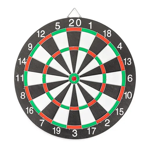 Descrição: Conjunto para jogo de dardos composto por um alvo dupla face em madeira com alça e outros detalhes em metal e seis dardos com pontas metálicas e acabamento em plástico.